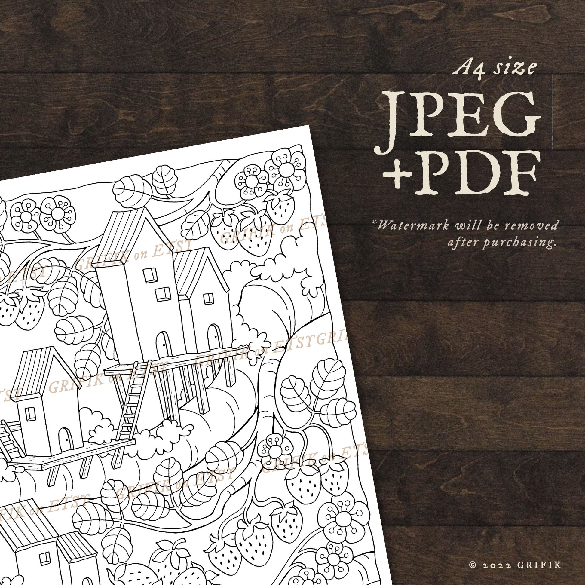 Escape to a whimsical world with this fantasy town coloring page! Perfect for unwinding or adding a touch of creativity to your day, this digital download lets you print the design as many times as you like, saving you time and shipping costs.